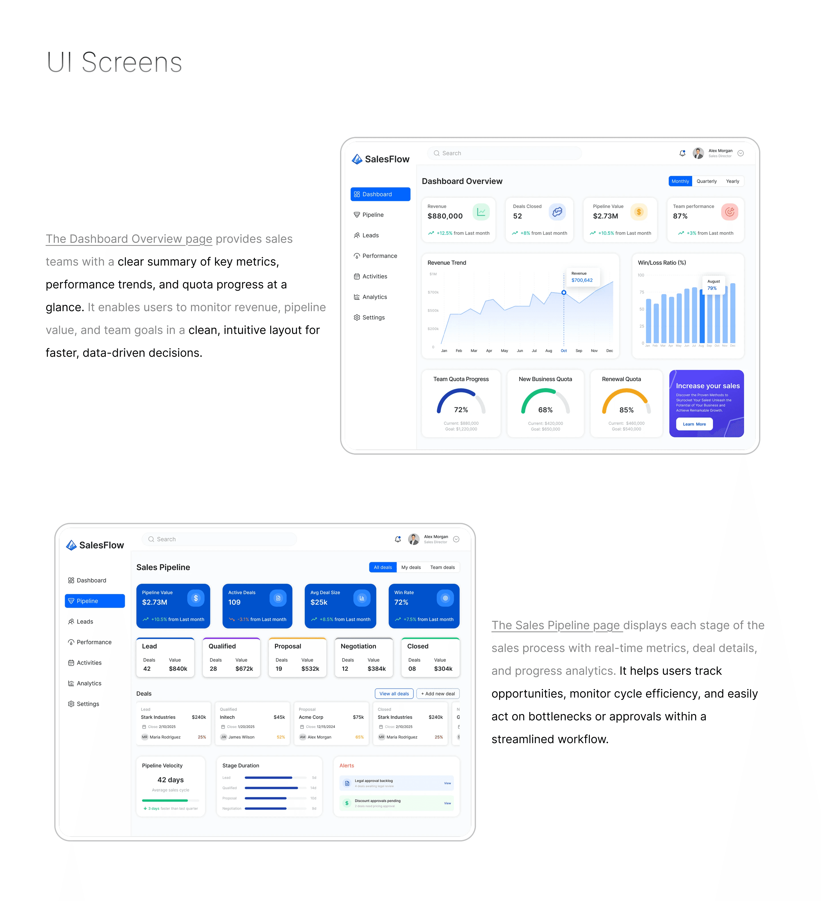 Full Project | https://www.behance.net/gallery/243670325/SalesFlow-Modern-CRM-Sales-Pipeline-Dashboard |